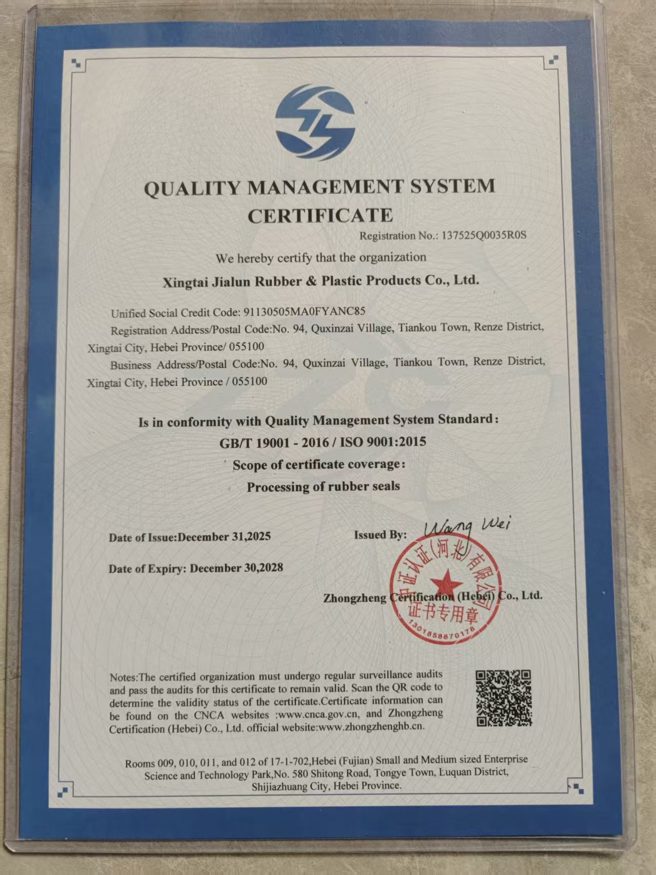 质量管理体系认证书